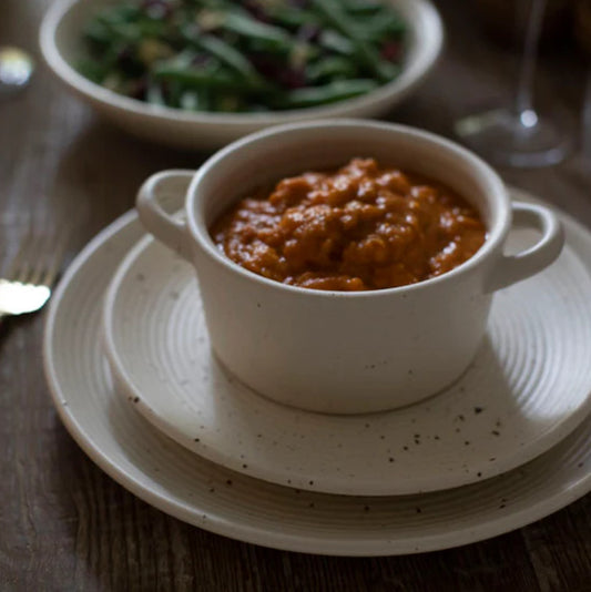Ribbed Ceramic Speckled Casserole Bowl w Handles