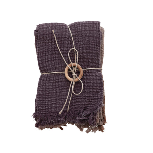 Cotton Tea Towels with Embroidered Edge and Fringe, Set of 2