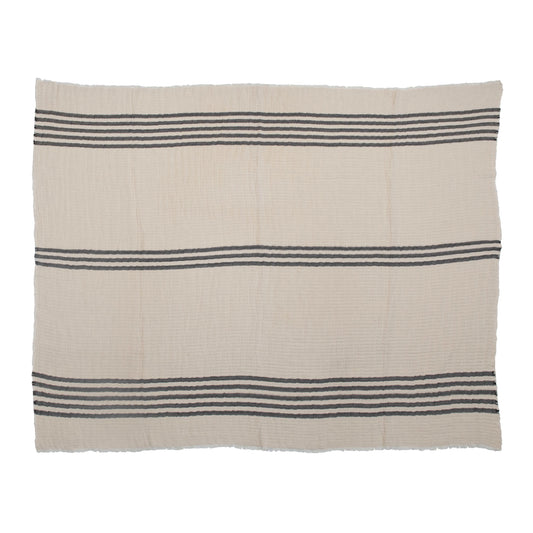 Aberdean Pillow, Cotton & Hemp, Blue Stripe