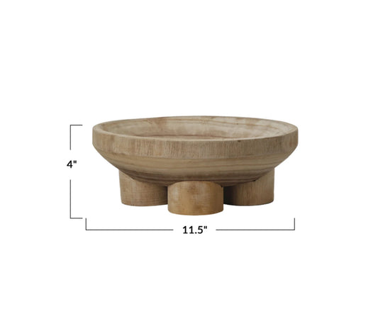 Paulownia Wood Footed Bowl, Natural (Each One Will Vary)