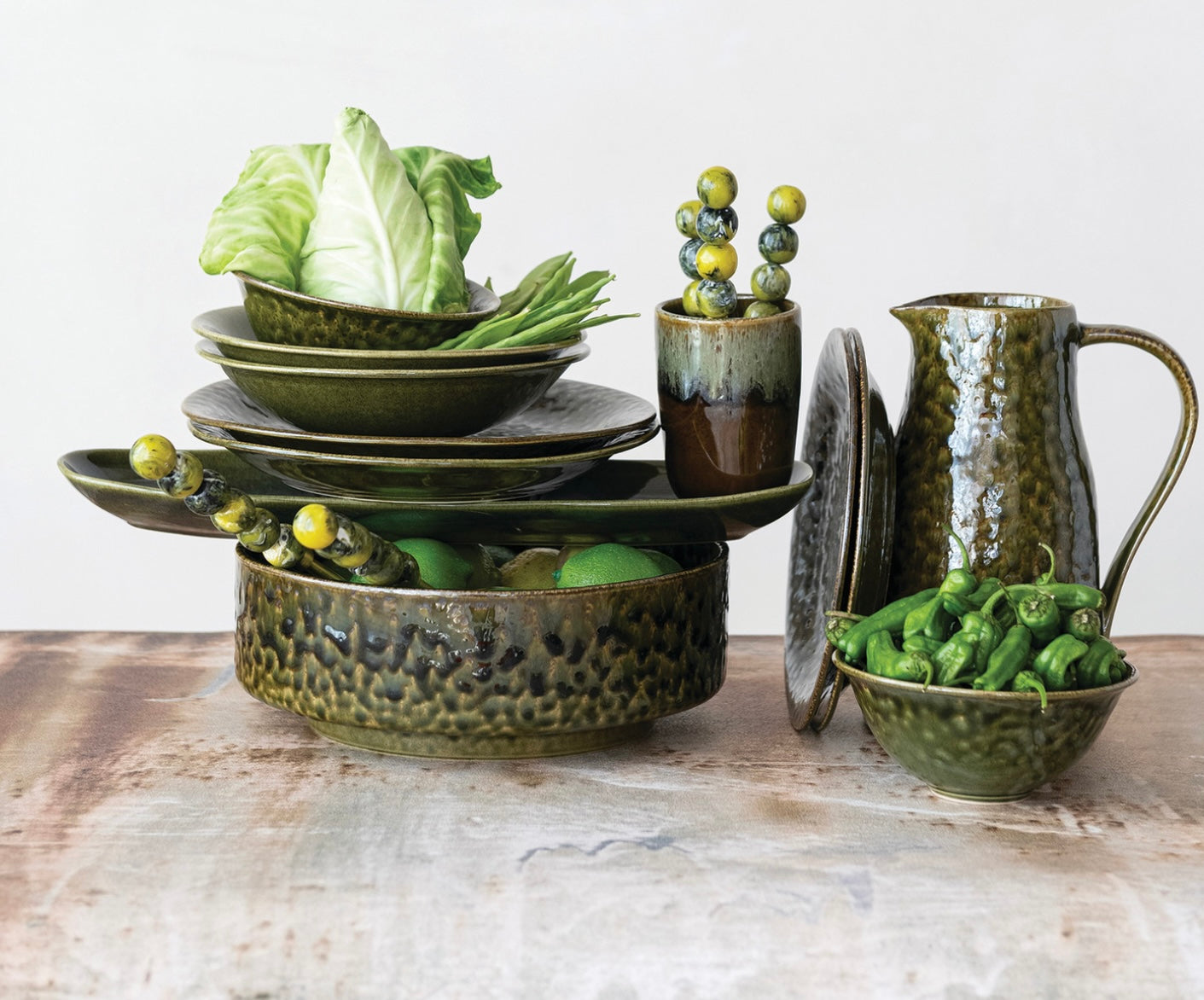 3" Round x 4-1/4"H 10 oz. Stoneware Cup, Reactive Glaze, Green (Each One Will Vary)