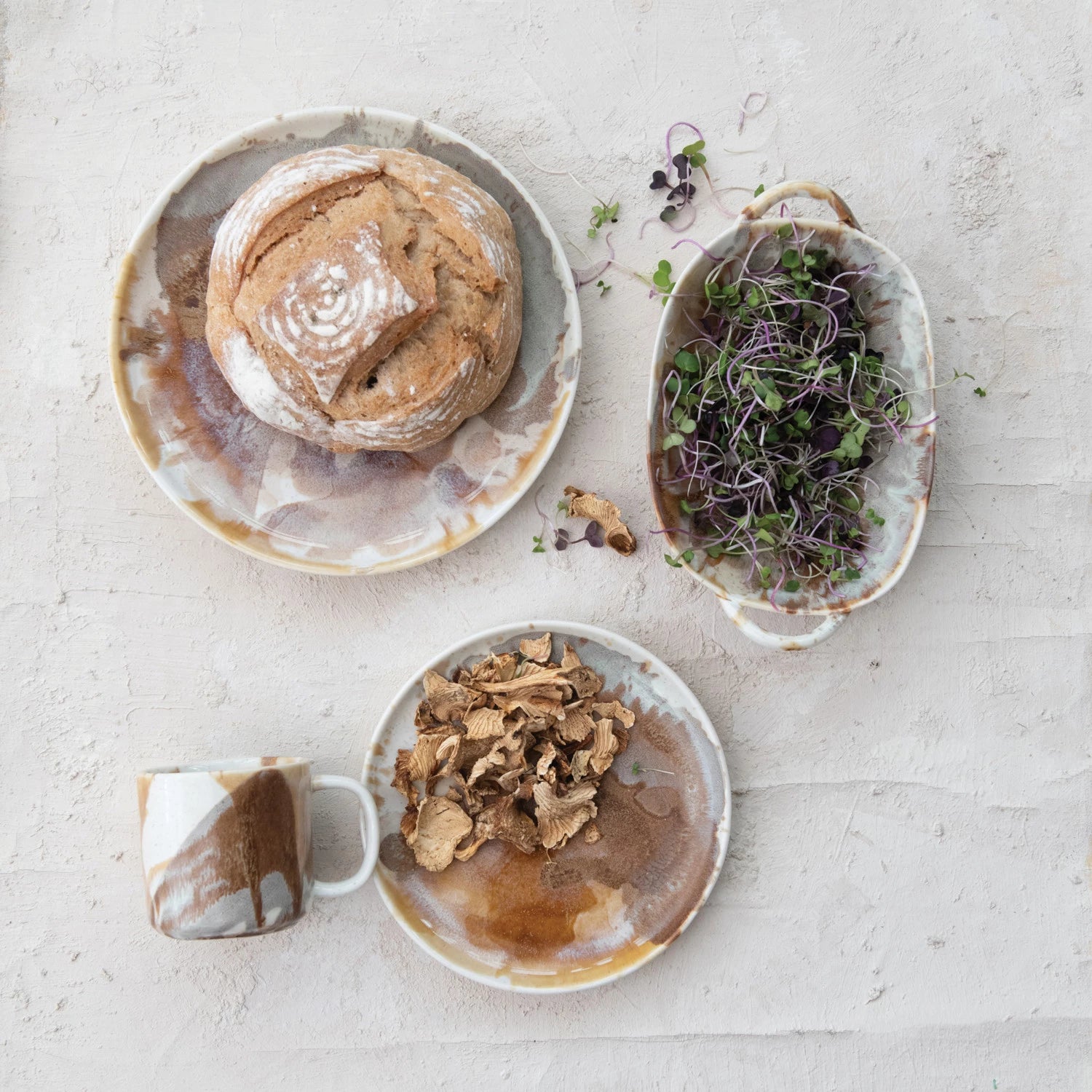 8" Round Stoneware Plate, Reactive Glaze, Multi Color