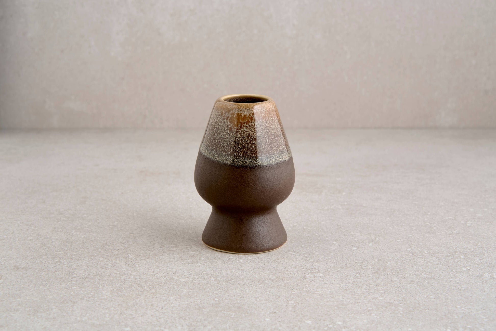 Elevate your matcha preparation with this expertly crafted Brown Dripped Matcha Whisk Stand. Designed to hold your bamboo whisk securely, it helps maintain the whisk’s shape and prolong its lifespan. Its stable base ensures your whisk dries evenly, preventing damage and preserving optimal performance for a perfect froth every time. Ideal for matcha enthusiasts seeking precision and care in their tea ritual.