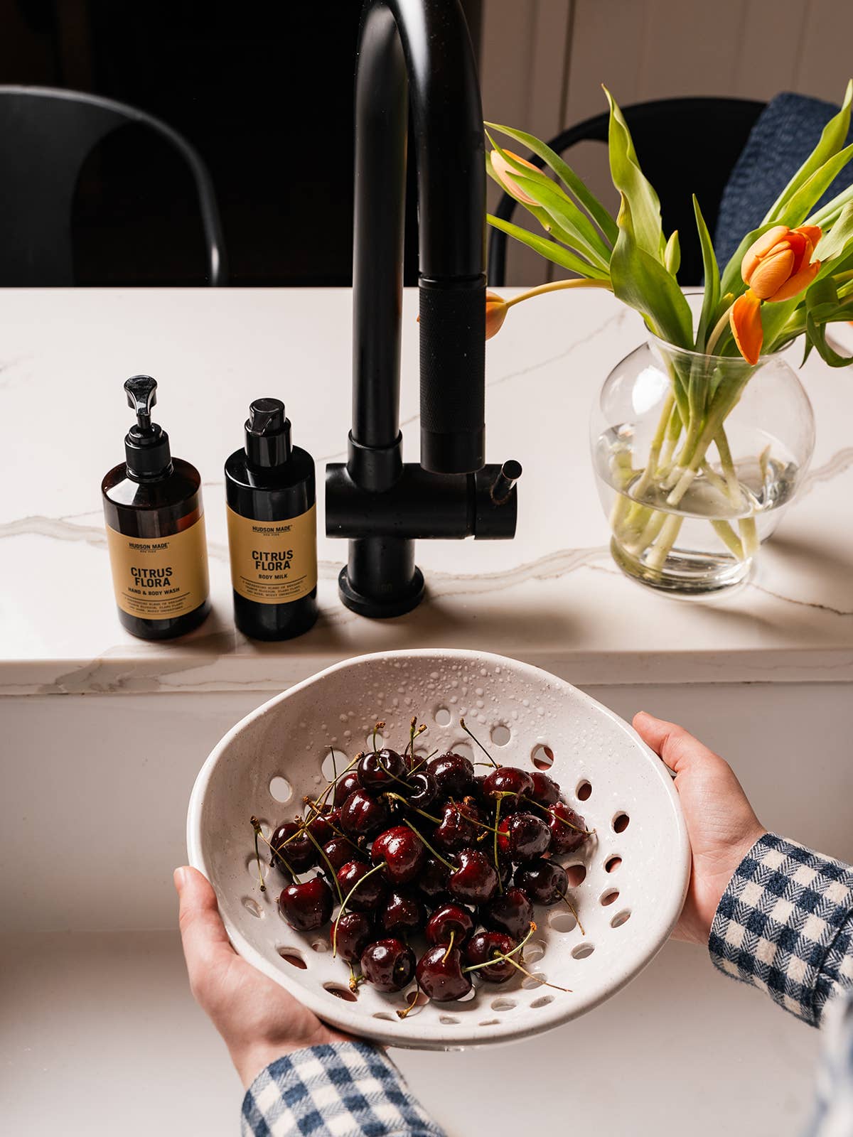 Designed by Glazed Garage, inspired by the coastal lifestyle, this hand-built naturally speckled clay colander offers uniqueness and functionality for everyday use. Available in two dreamy finishes.