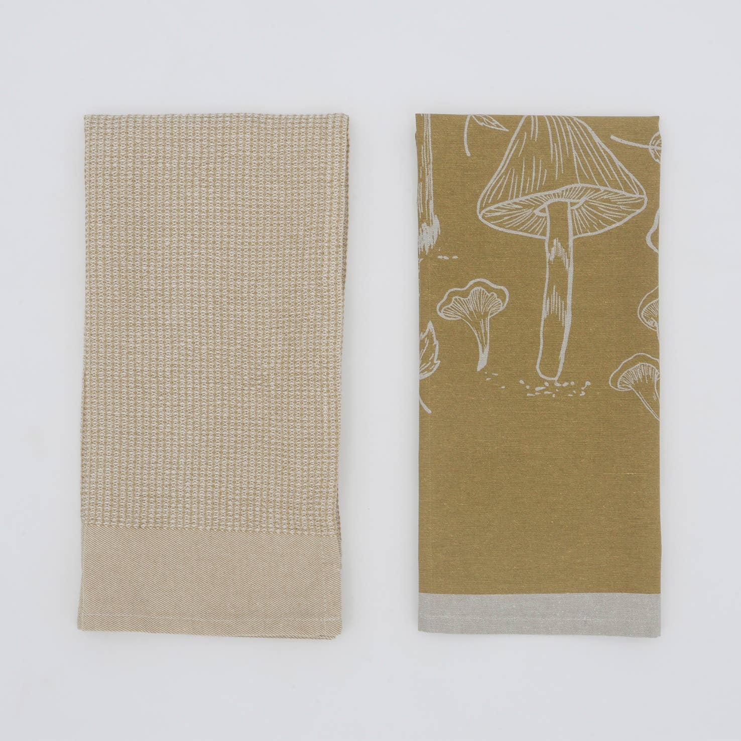Featuring charming hand-drawn mushroom motifs on soft, absorbent cotton, these towels are as delightful as they are functional. Perfect for drying dishes, lining bread baskets, or adding a cozy cottagecore vibe to your space. Each set includes two coordinating designs—one playful, one classic—for the perfect balance of whimsy and warmth.
